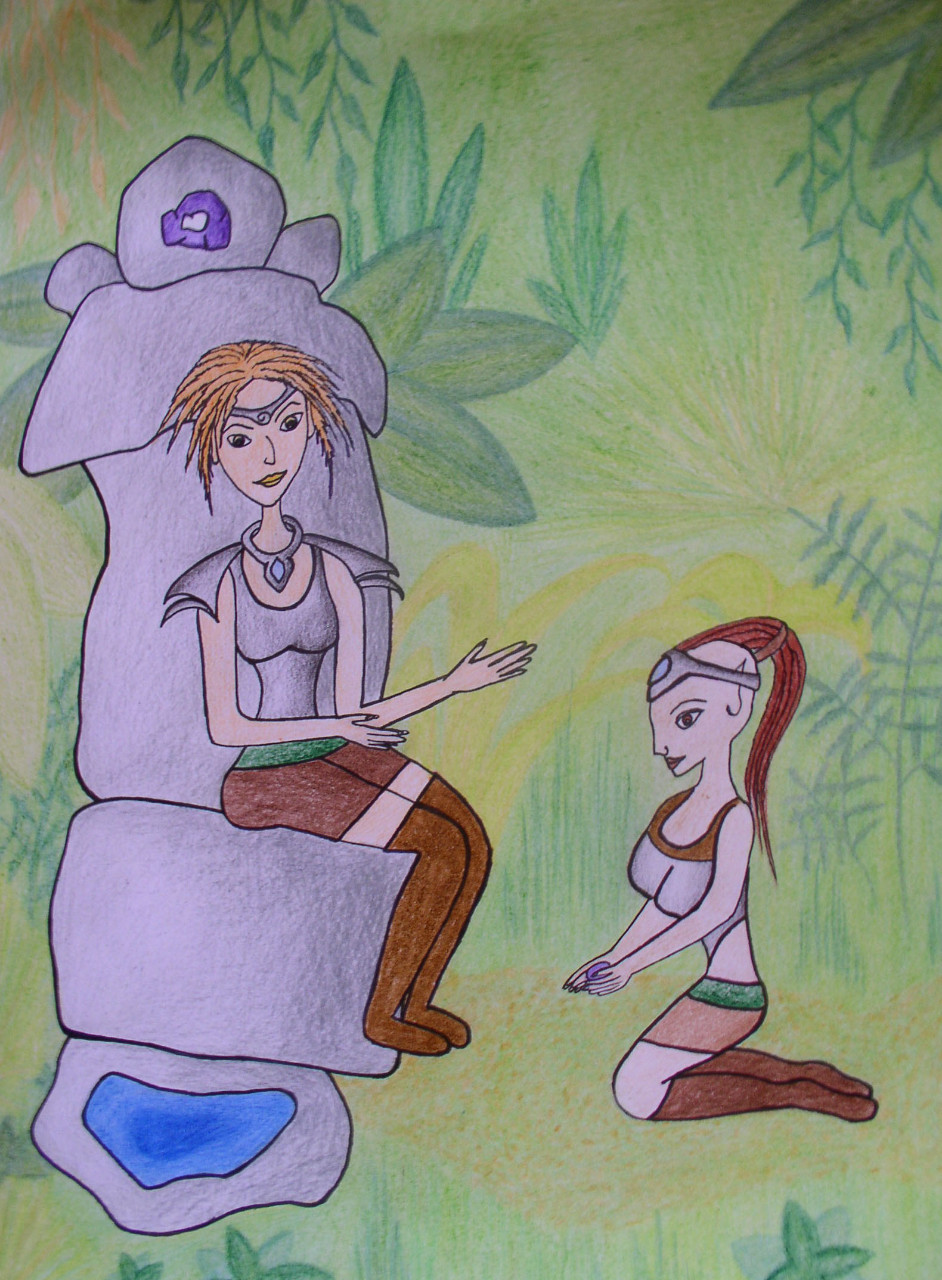Její jasně skoro až přízračně modré oči se podívaly na jemné a teplé sluneční světlo poprvé v poslední teplý letní den toho roku. Její ebenově černé a nezvykle dlouhé řasy poprvé zamrkaly ve chvíli, kdy spatřila naposledy jemnou, bez vrásek a snědou pleť své maminky. Od chvíle jejího narození se malý útulný zámeček z bílého mramoru, který když byla doma sama tolik milovala, stal jejím vězením. Zlatou klecí, z které nebylo úniku. Už jako malá holčička s nezkrotnou povahou a zářivě blonďatými vlasy ráda sedávala na travnatých útesech obklopující ostrov, na kterém se narodila a snila o tom, co je asi za tou šumící modří, které maminka říkala moře, a které ona když nemohla spát naslouchala. Nikdy nesměla opustit zámek a jeho zahradu. Nikdy nesměla do lesů, jenž zámek obklopovaly, byť ji často její nespoutané srdce volalo za hlasy taneční hudby, která se z hlubokých lesů ozývala. Jak dívka rostla, její nespoutaná a divoká povaha vyžadující svobodu rostla s ní a dostávala křídla. Její jemnou mléčnou pleť neposkvrněnou sluncem, byť na něm trávila dost času, trápily starosti a její smutek z toho, jak je zde zavřená, že nemůže vyletět jako ten pověstný pták z klece, se zračil na jejích očích, které den ode dne tmavly víc a víc. Často sedávala v zadním koutku zahrady jako stvořený pro její sny a přání, které zde s láskou zakreslovala tužkou. Místa jenom pro ni, místa, kde se její samota ztrácela v nedohlednu. A tak tu žila do svých čtrnácti let, skleslejší a skleslejší, když se projevila její největší tužba a to, mít přítele. Opravdového přítele, který ji bude mít rád. Ten jí chyběl snad nejvíce. Když její rodiče mizeli na několik týdnů pryč, často byla v pokušení vejít do posvátného ticha lesa, který ji jako kouzlem tak přitahoval. Jednoho dne, kdy seděla na útesu a pozorovala noční oblohu a tisíce hvězd, které za posledních pár let jako jediné dokázaly vzbudit úsměv v její tváři, za sebou uslyšela tiché zaržání. Věděla, co jsou to koně. Ale věděla to jenom z knih. Z knih, které jí maminka zakázala. Z knih, které byly jako stvořené pro její svodnou mysl. A tak se postavila a vydala se vstříc tomu neznámému stvoření, které znala pouze z obrázků a pohladila ho po nose. Kůň měl jemně zelené oči, ebenově černé tělo a jasně zelenou hřívu krásně ladící k jeho očím. Byť na tomto zvířeti nikdy nejela, přitahována jeho magickou silou se na něj vyhoupla a projezdila celou noc. Najednou její oči zase zesvětlaly, po tváři se jí rozprostřel úsměv a její chmurné pocity a myšlenky prázdnoty byly zažehnány. Za to byla probuzena nezlomná láska ke koním, spíše ke koni. Jezdila na něm každý den, hned když mohla, tak na něj vyskočila a ujížděla daleko do lesa k vodopádu, kde často sedávala a kreslila. Zamilovala si přírodu. Pokaždé když v tom zakázaném lese, jak mu maminka říkala, byla, její svobodné srdce zaplesalo radostí a mysl se rozjasnila. Jednoho krásného podzimního dne, ji však rodiče zamkli v pokoji, neb už dlouhou dobu tušili, copak jejich velice přísně a chladně vychovaná dcerunka vyvádí. Mysleli, že tak její svobodomyslnost zkrotí, ale spíše ji ještě roznítili, až se dívka rozhodla utéct. A jak jinak, utekla do jí tolik milovaného lesa, i se svým koněm. Věděla, že je konec a její duše byla konečně odproštěna od všeho zla,krutosti a chladnosti s jakou ji její rodiče, zvláště tedy maminka, vychovávali. Rozlétla se jako pták, stejně jako její písmo, když se před zraky dalších dívek jako ona podepsala na pergamen a přidala se k Amazonkám, k dívkám, které ona hluboce obdivovala a vzhlížela k nim. A tak se utlačovaná princezna stala hrdou a nezkrotnou Amazonkou.